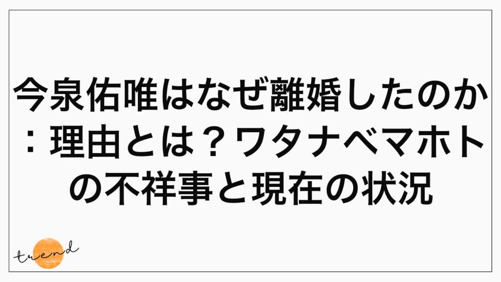 今泉佑唯はなぜ離婚したのか:理由とは?ワタナベマホトの不祥事と現在の状況