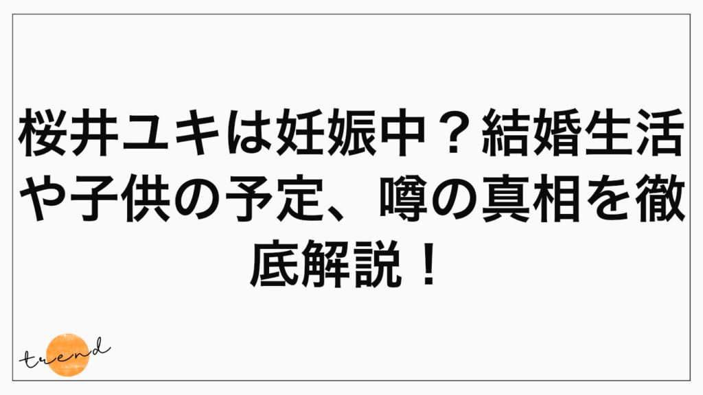 桜井ユキは妊娠中?結婚生活や子供の予定、噂の真相を徹底解説!