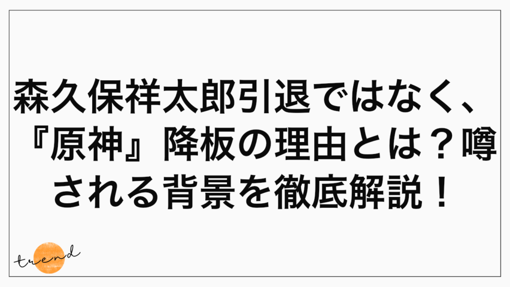 森久保祥太郎引退!?『原神』降板の理由とは?噂される背景を徹底解説!