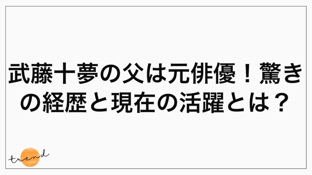 武藤十夢の父は元俳優!驚きの経歴と現在の活躍とは?