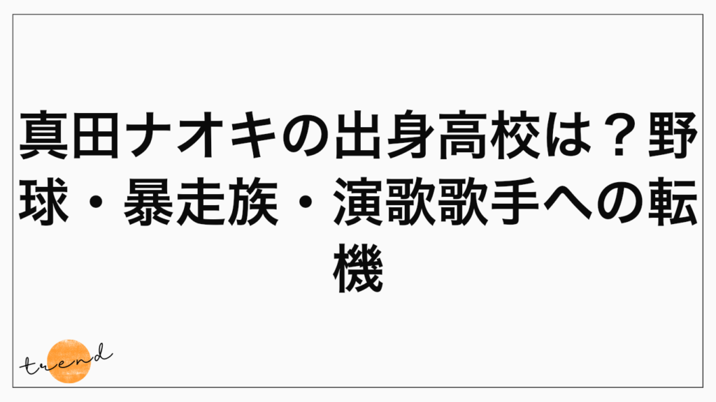 真田ナオキの出身高校は?野球・暴走族・演歌歌手への転機