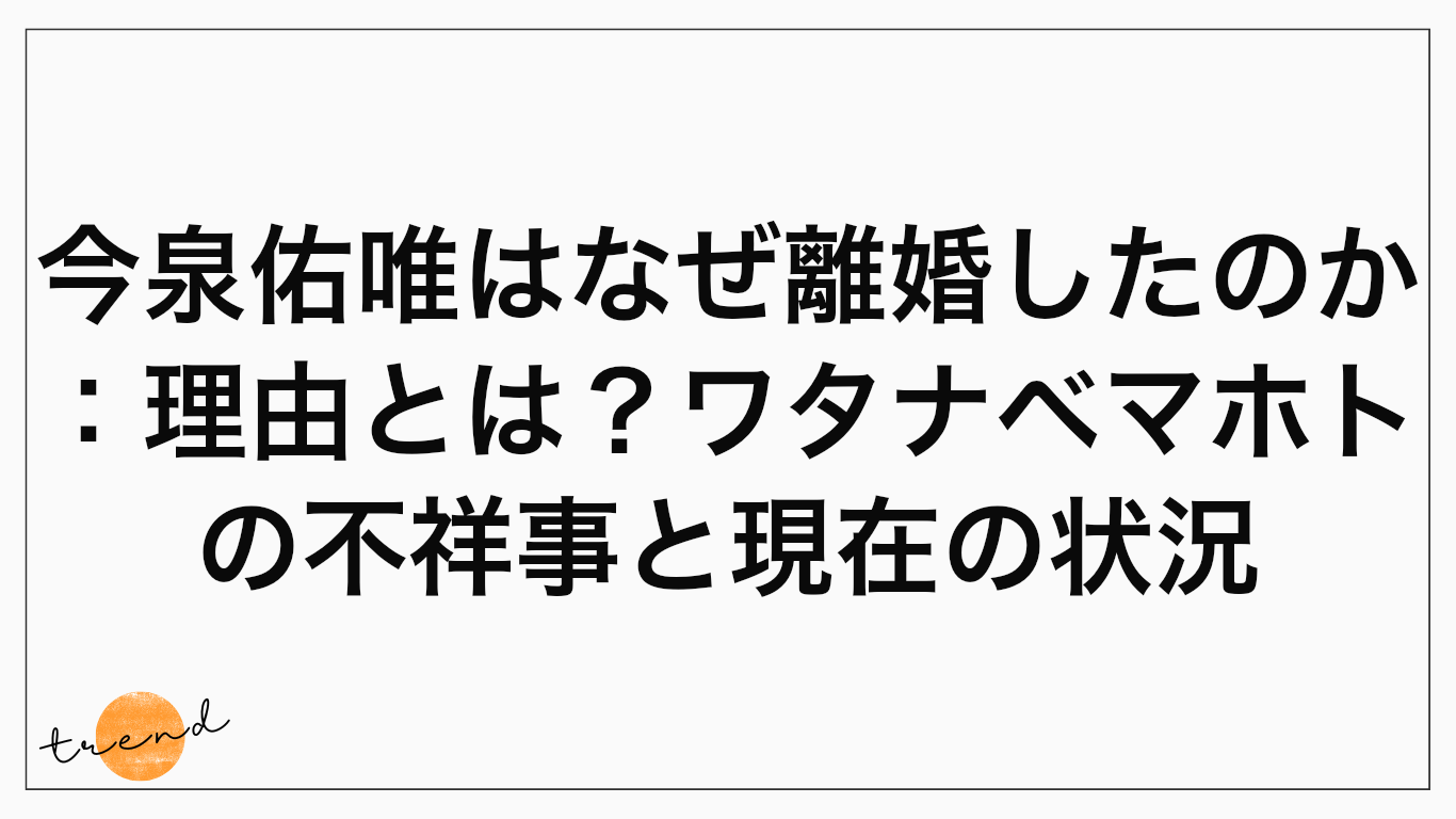 ワタナベマホトさんの逮捕を受け、今泉佑唯さんは結婚生活を見直すこととなりました。最終的に、二人は離婚を決意し、それぞれの道を歩むことになったのです。